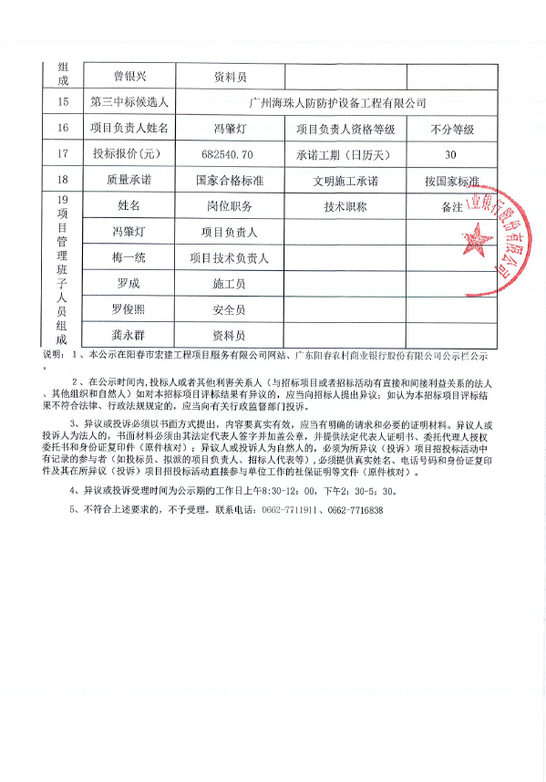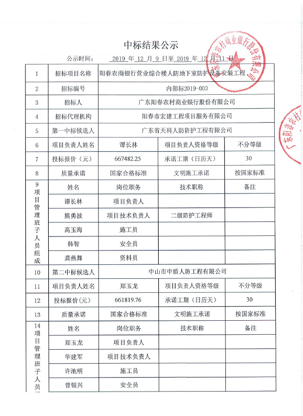 陽春農(nóng)商銀行營業(yè)綜合樓人防地下室防護(hù)設(shè)備安裝工程